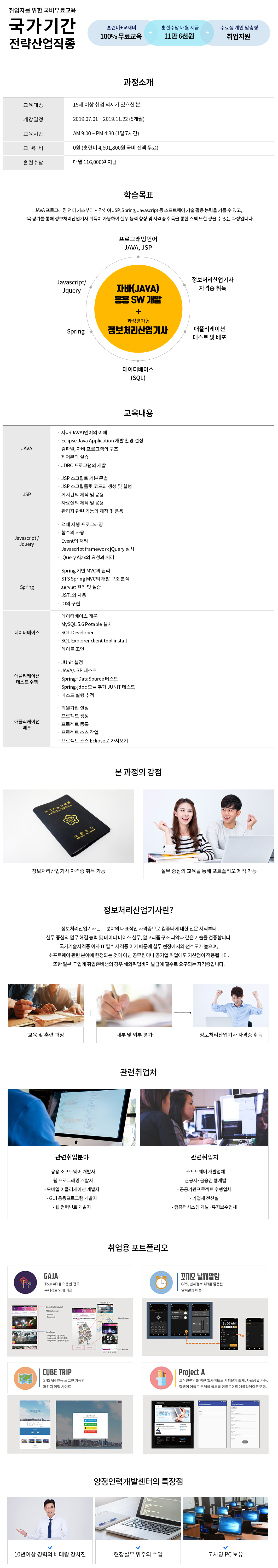 [7월 국비무료교육] IT/자바SW분야 취업을 위한 정보처리산업기사 과정