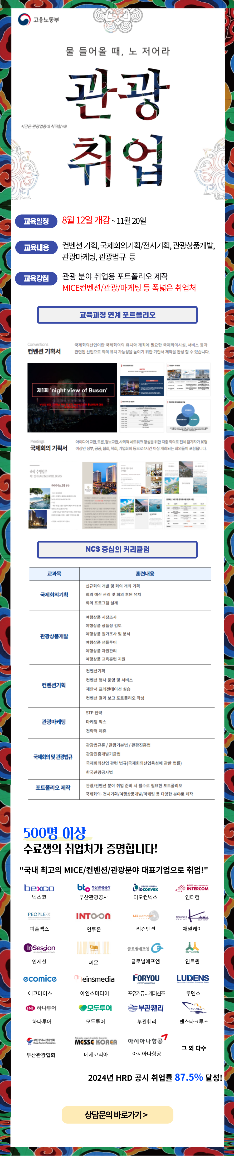 [개강일정] 글로벌 관광마케팅 컨벤션 전문가 양성 8월12일 개강