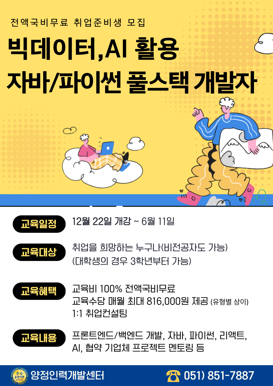 [개강일정] <KDT> 빅데이터, AI활용 자바/파이썬 풀스택 개발자 양성 12월 22일 개강